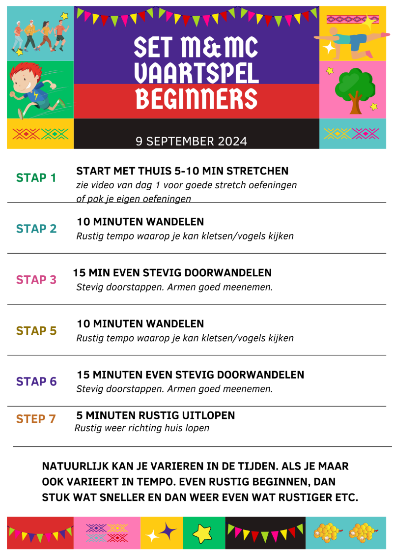 Eigenlijk komt het er op neer dat je gaat wandelen vandaag en dat je gaat variëren in tempo. Begin thuis met een leuke stretch oefening zoals deze: